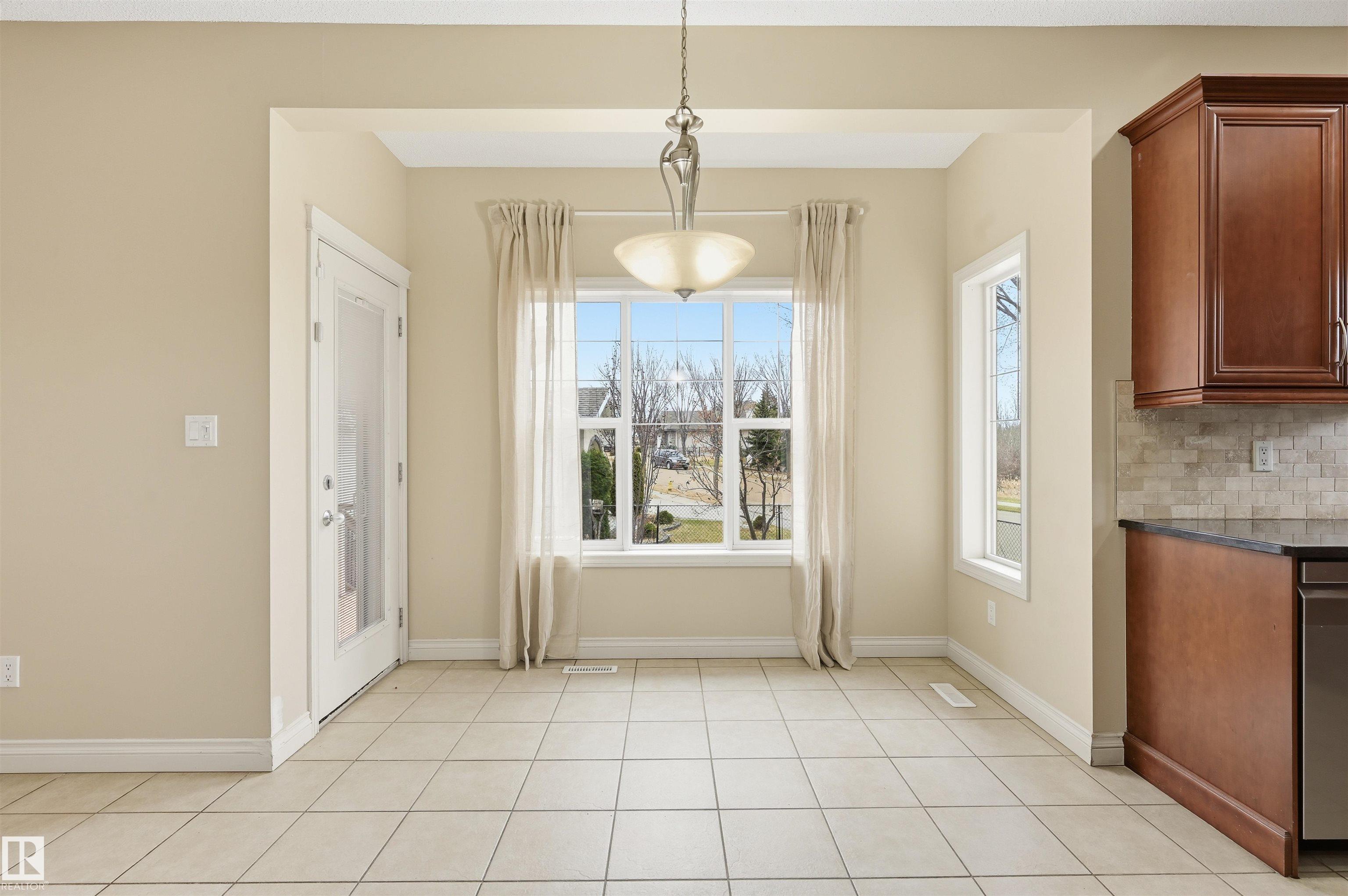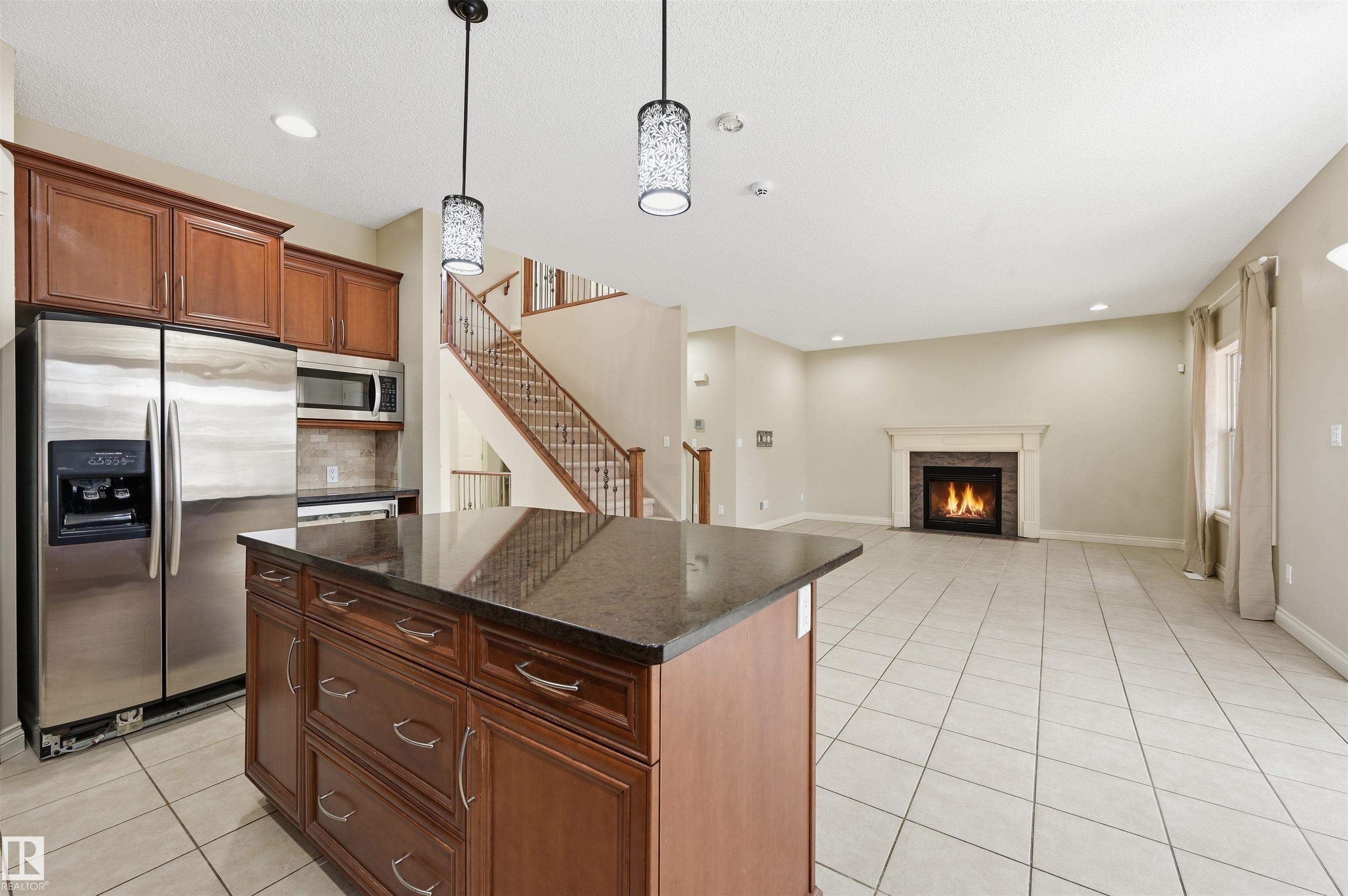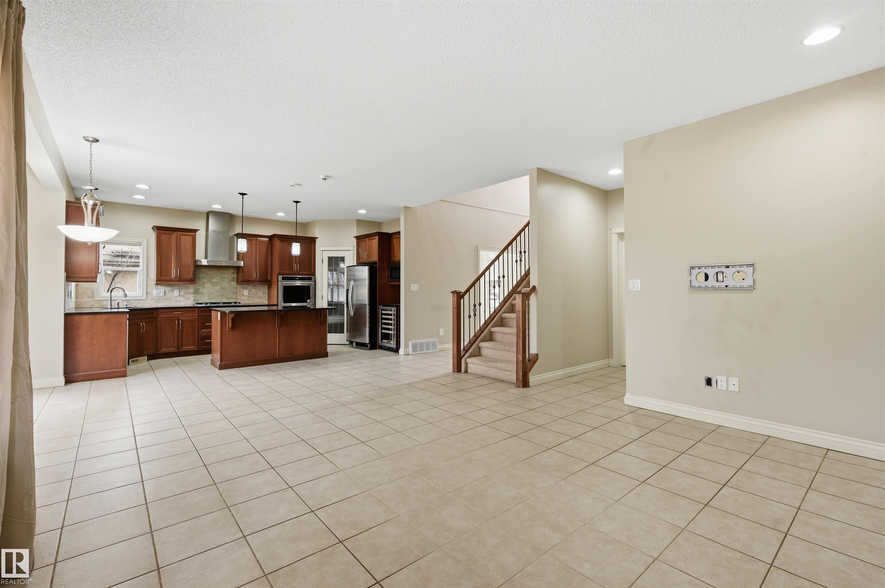 Desirable SW Hodgson corner lot. Nestled across from Hodgson Wetland Park & just steps to Whitemud Creek Ravine. PROFESSIONALLY PAINTED April 2026. Grand vaulted foyer w/ plenty of natural light & large office (or bdrm) upon entrance. Kitchen features stainless steel appliances (Kitchen Aid wall oven/Dacor stove) & walk-in pantry. Cozy living rm w/ gas fireplace. Main level complete w/ 3PC BTHRM & spacious mudrm w/ laundry. Upstairs boasts a huge bonus room, 2 spare bdrms & spacious primary retreat w/ ensuite & walk-in closet. Basement finished w/ 4th bdrm, full bthrm, rec space & flex area. This corner lot offers partial park views from the yard + has plenty of deck space to enjoy w/ pergola & hot tub. Cozy front porch & oversized garage w/ SIDE ENTRANCE. Features: 9' ceiling, hot water on demand & AC. Great school designations & proximity to Hodgson Park & ravine walking trails. Terwillegar Rec Centre, transit & easy access to major arteries. Plus shopping & dining at nearby neighborhood squares!