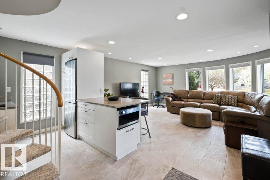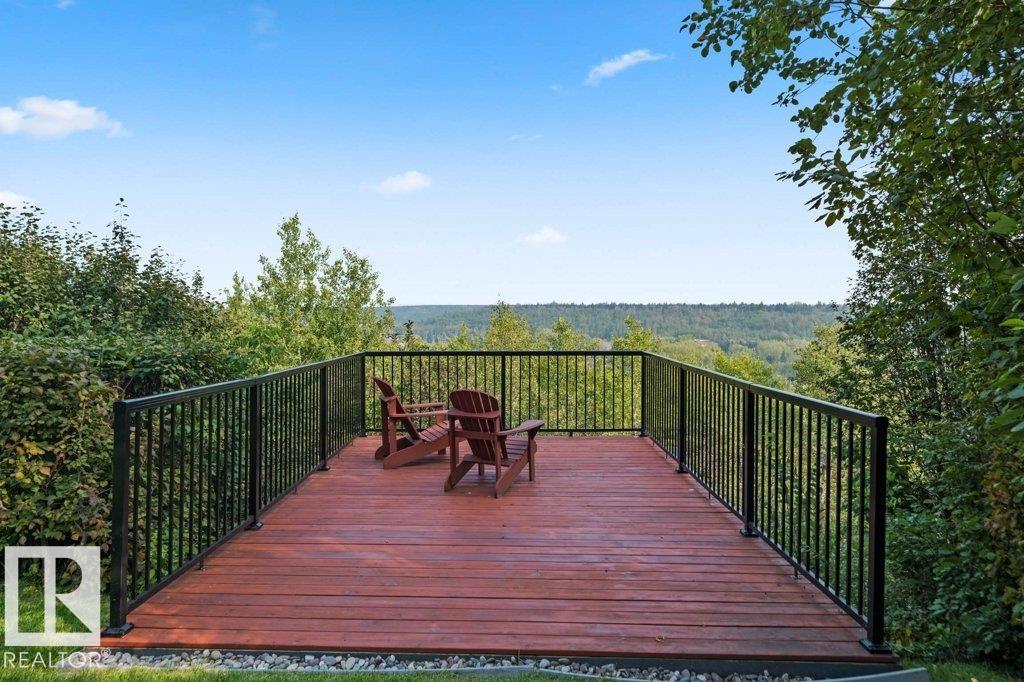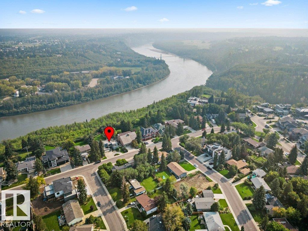 Peaceful. Private. River Valley Views. Elevated living on one of Rio Terrace Drive’s most coveted ridge lots. This architectural West Coast modern 4+1 bedroom, 5 Bath home offers a rare blend of river valley views and serene, garden-wrapped seclusion for privacy. Expansive south-facing grounds are beautifully landscaped, creating intimate spaces for quiet moments or unforgettable entertaining. Inside, curated living areas are filled with natural light through oversized windows, while a 500 sq ft rooftop patio showcases stunning views and a seamless connection to nature. Meticulously maintained and highly livable, the home can be enjoyed as-is while you design your future dream home on this exceptional lot. The connected 2-storey guest suite provides flexibility to suit your needs; use it for multi-generational living, as an in-home caregiver/nanny suite or a home business space. Minutes to central Edmonton, yet worlds away. Image #2 is a concept rendering provided for illustrative purposes only.