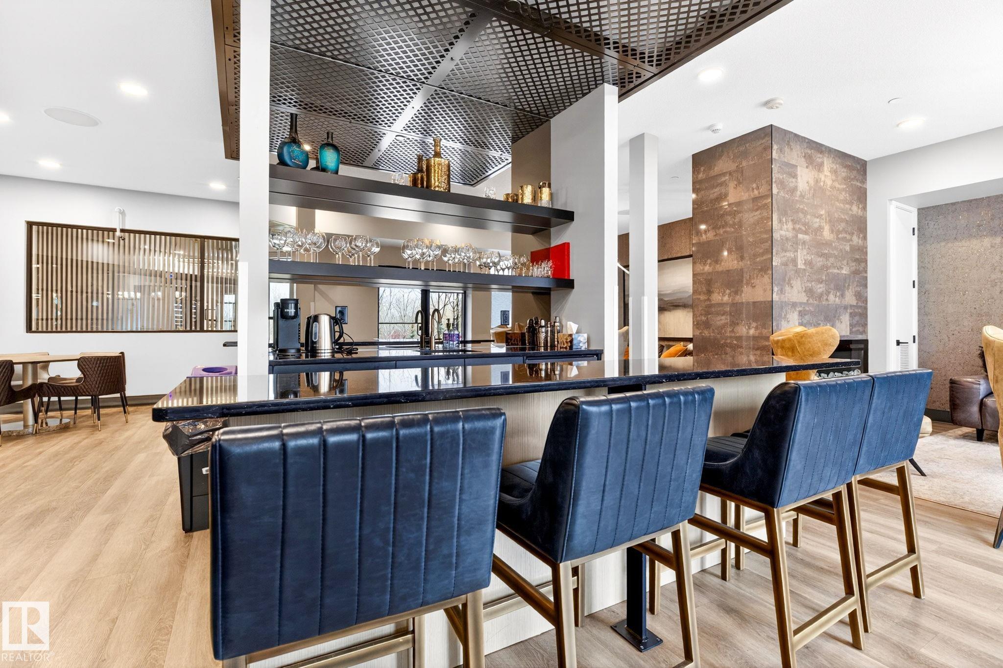 EDGE AT LARCH PARK! STUNNING 1800 SF OPEN PLAN ON 5TH FLOOR. Adjacent the Mactaggart Ravine. Enjoy a carefree lifestyle in this fabulously luxurious building with unparalleled high end amenities including a games room, art/craft studio, gym, yoga studio, CHEFS KITCHEN/OWNERS LOUNGE, library, pet grooming/wash room, bicycle storage, fire pit and roof top patio. As you enter the unit you will be captivated by the spacious open plan and high end contemporary finishings. Spa like 4 pc bathroom, large primary bedroom with spacious walk in closet. Quartz countertops throughout with stainless steel appliances, LVP flooring, Hunter Douglas custom blinds, wood panel feature wall w/gorgeous 48" electric fireplace. 2 TITLED PARKING STALLS ONE UNDERGROUND STALL WITH STORAGE CAGE AND ONE ABOVE GROUND. Kilometres of ravine walking paths right outside your door!! NEVER BEEN LIVED IN! Don't miss this opportunity to live in one of the city's finest buildings and locations!!