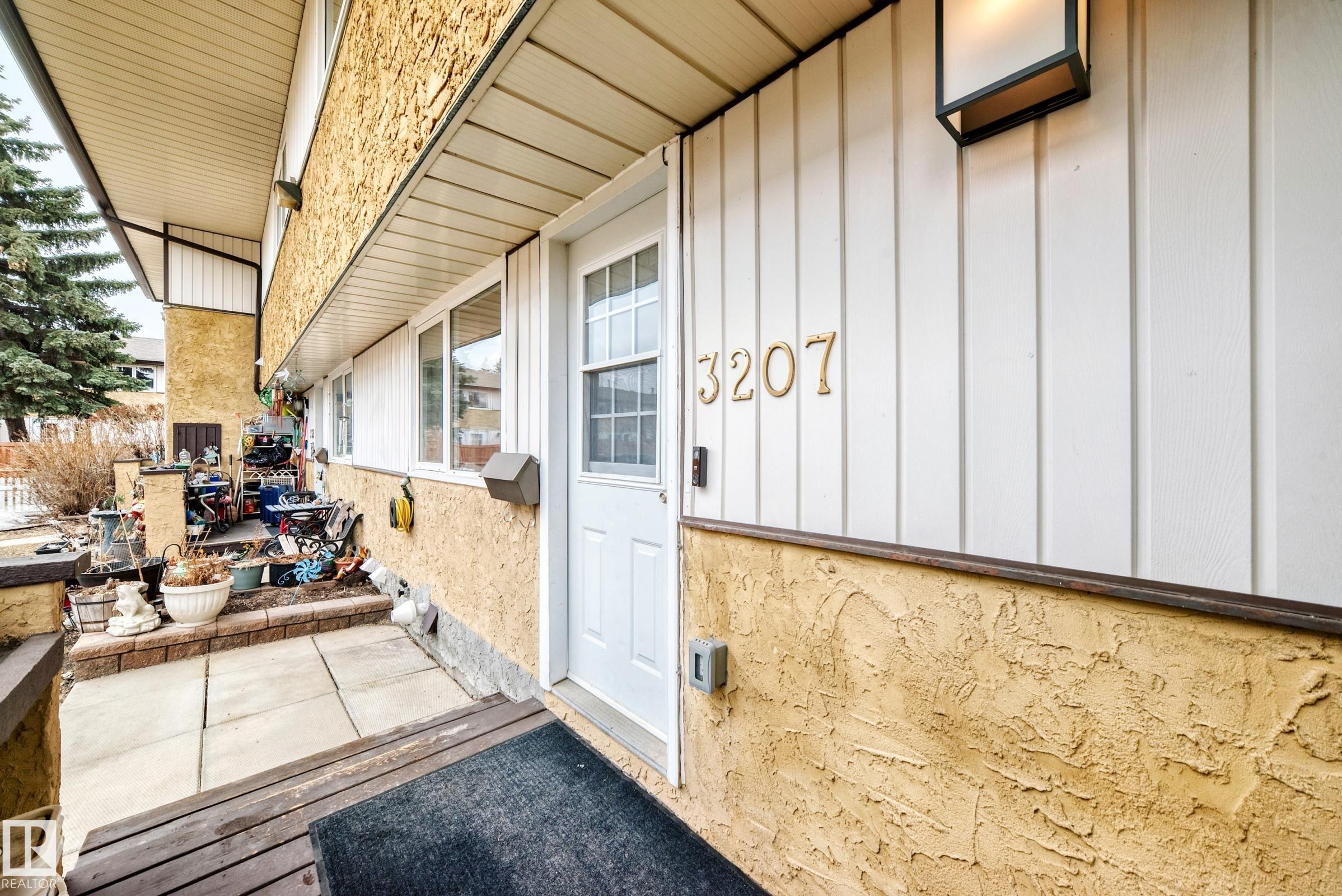 Immaculately maintained two-storey townhouse condo in Hairsine! There is absolutely nothing you need to do to this carpet-free home — just move in and enjoy. The main floor features a large kitchen with white cabinetry, new stainless steel appliances and ample countertop space. The bright and spacious living room offers direct access to the fenced yard, while the adjacent dining room is big enough for the whole family. A convenient two-piece powder room completes the main level. Upstairs, the master bedroom boasts a huge walk-in closet plus extra storage. Two additional bedrooms and a full 4-piece bathroom round out the upper level. The basement is partly finished and ready for your personal touch. This home is in the perfect location, with easy access to Anthony Henday Drive and walking distance to the rec centre, plus excellent proximity to phenomenal schools, parks, public transportation and shopping!