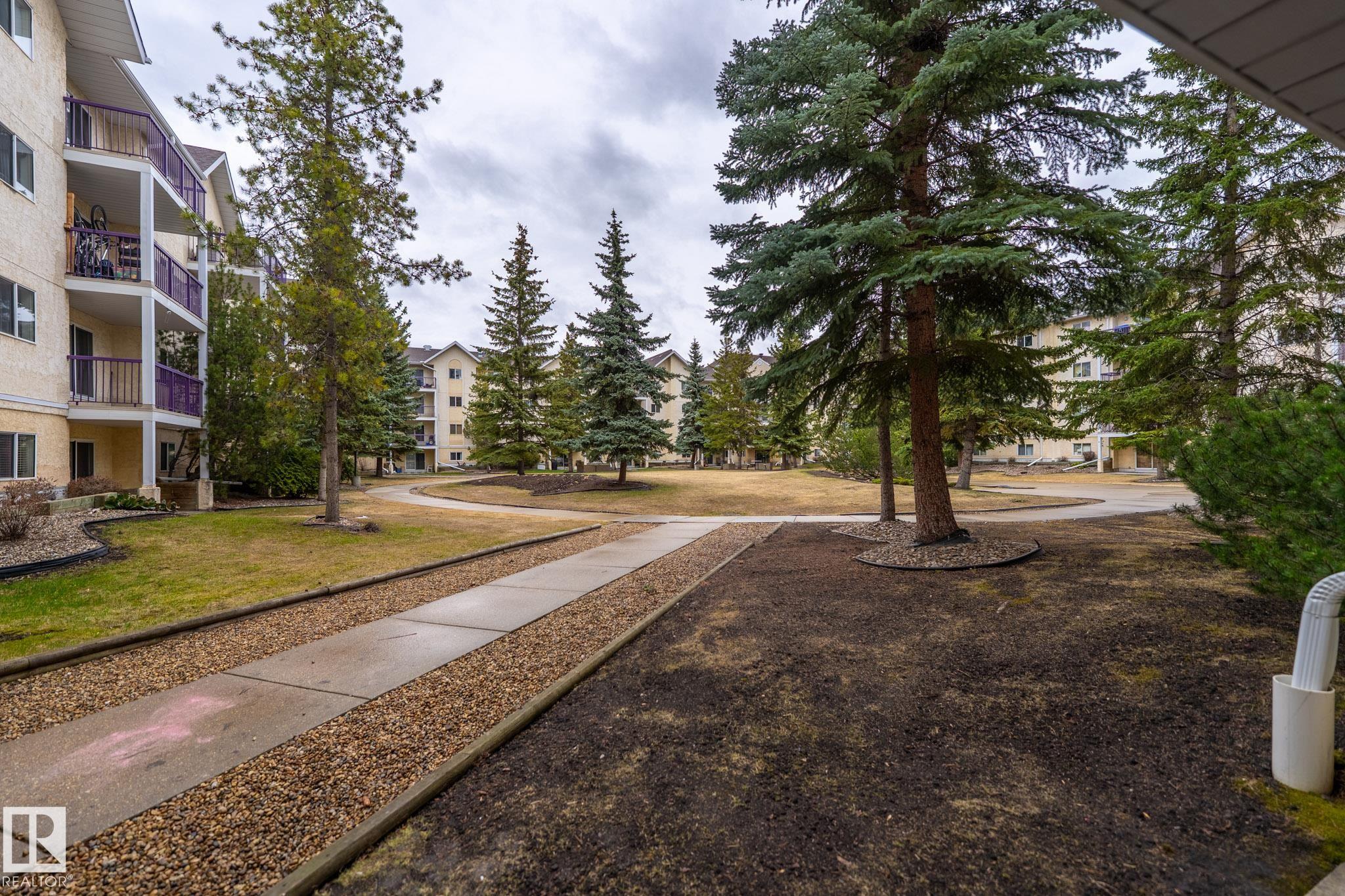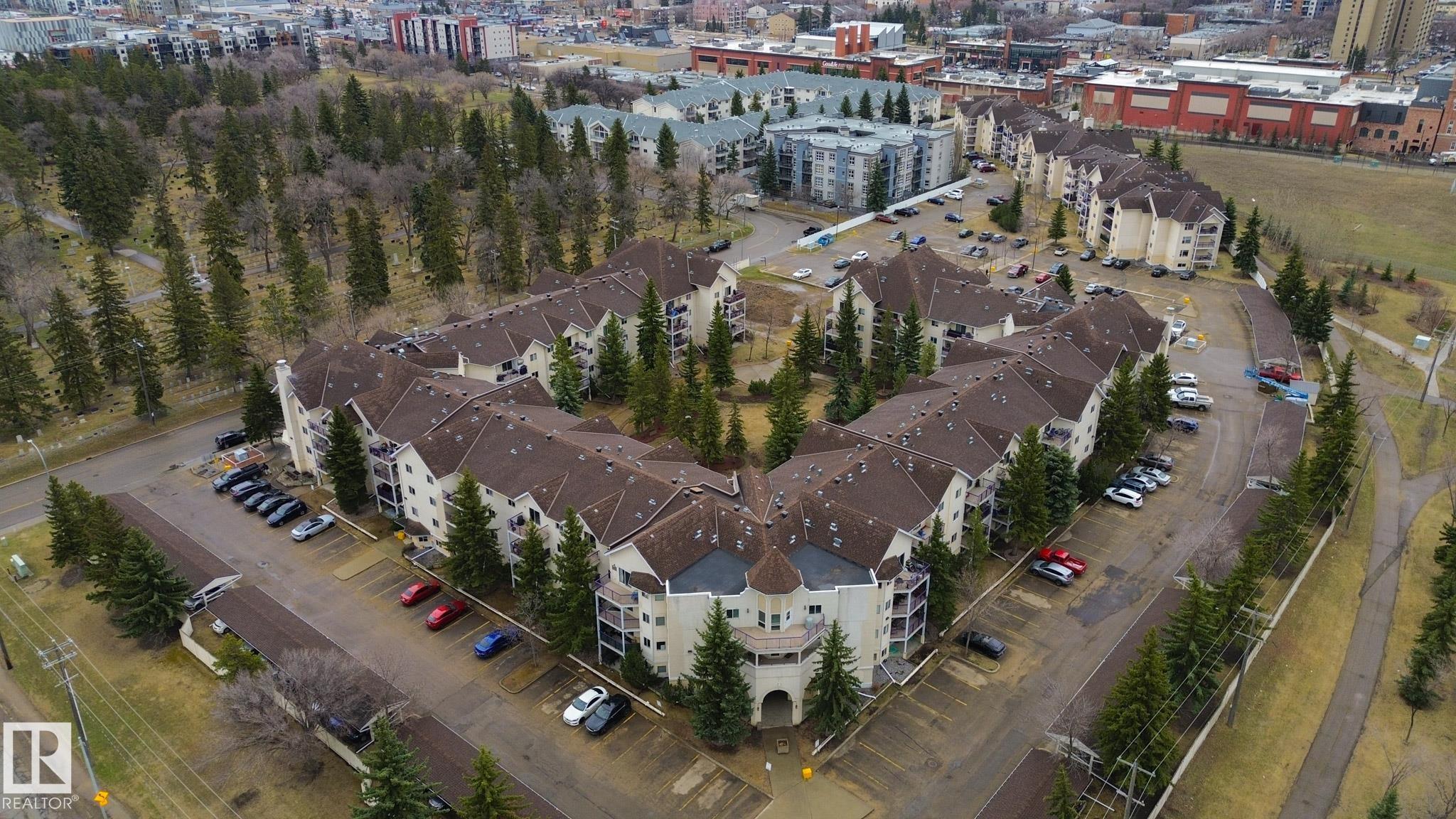 Welcome to Pointe Uptown! This unique and rare 3-bed, 2-bath ground-floor condo offers outstanding convenience across from Manchester Square, Brewery District, and Unity Square, and just minutes from MacEwan University, Downtown, and Jasper Ave. The unit features a spacious living area with a corner fireplace and access to a concrete patio overlooking a quiet courtyard with picnic tables and a walking path. The primary bedroom includes a walk-through closet and 4-piece ensuite, plus the added benefit of in-suite laundry. A covered, powered parking stall is located right outside the main door, and the building provides ample visitor parking. Ideal for investors, students, or first-time buyers seeking space and a highly walkable location. Welcome home!