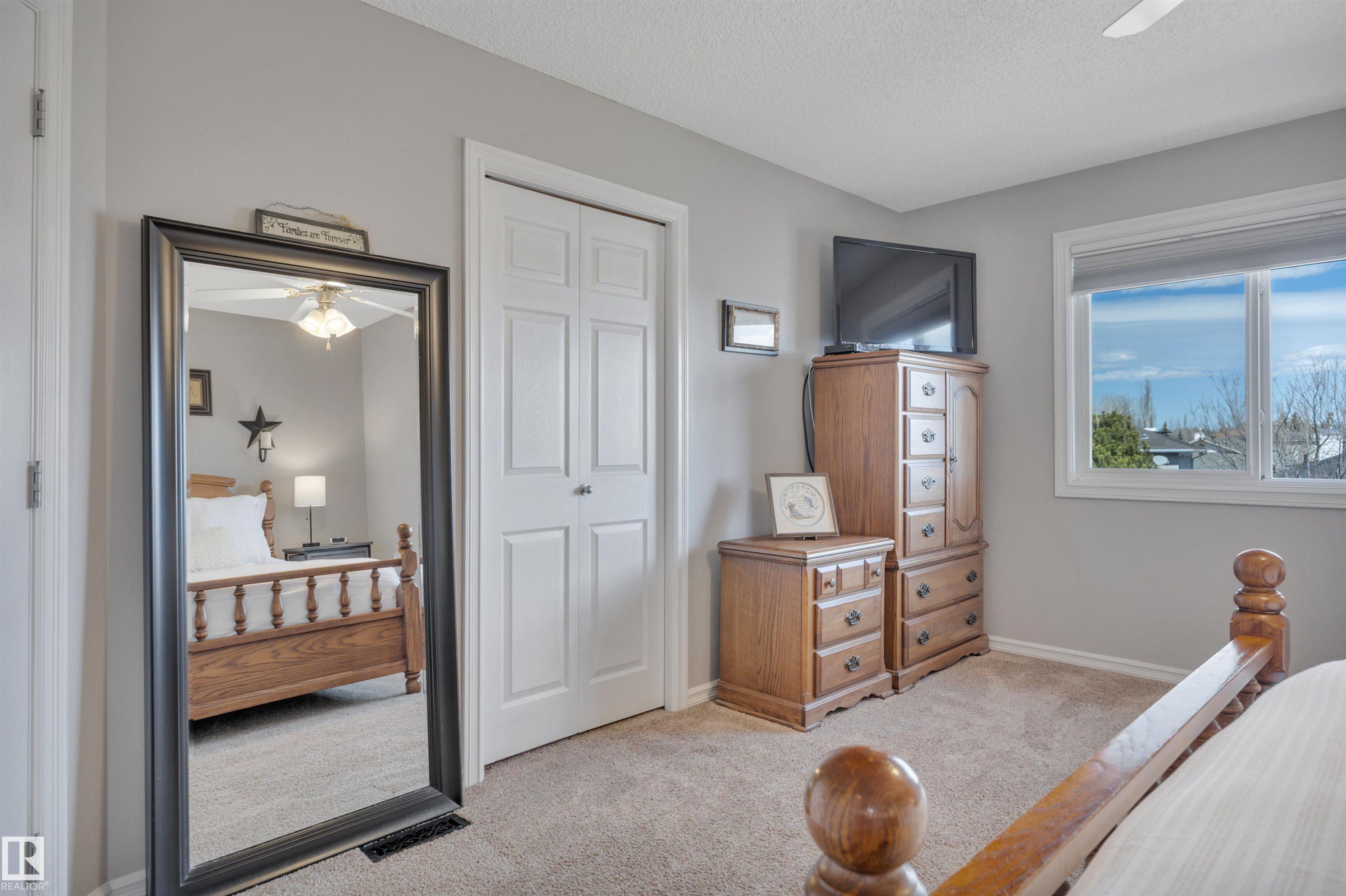 MASSIVE PIE LOT! CUL DE SAC! METICULOUSLY CARED FOR! This 1904 sq ft 4 bed, 3.5 bath home in desirable Windrose checks the boxes for your growing family! Feat: A/C, heated garage, newer shingles, paint, plank flooring & newer carpet, gas fireplace, gorgeous landscaping, & more! Bright main floor with big windows & spacious entryway welcomes you, with a classic open concept living / dining / kitchen layout designed for optimal entertaining & family gatherings. Trendy kitchen w/ granite countertops, corner pantry, S/S appliances & black handles, with access to your dream backyard. Upstairs brings a massive bonus room for movie night & play space for the kids, 3 nice sized bedrooms including the primary bed w/ 4 pce ensuite & walk in closet. Fully finished basement w/ plush carpets, drop ceiling, 4th bedroom, 4 pce bath & plenty of storage. The backyard oasis is perfect for summer bonfire, BBQs, and letting the kids and dogs run free! Large gazebo, trees, shrubs, & pavers unite the space well! Welcome home!