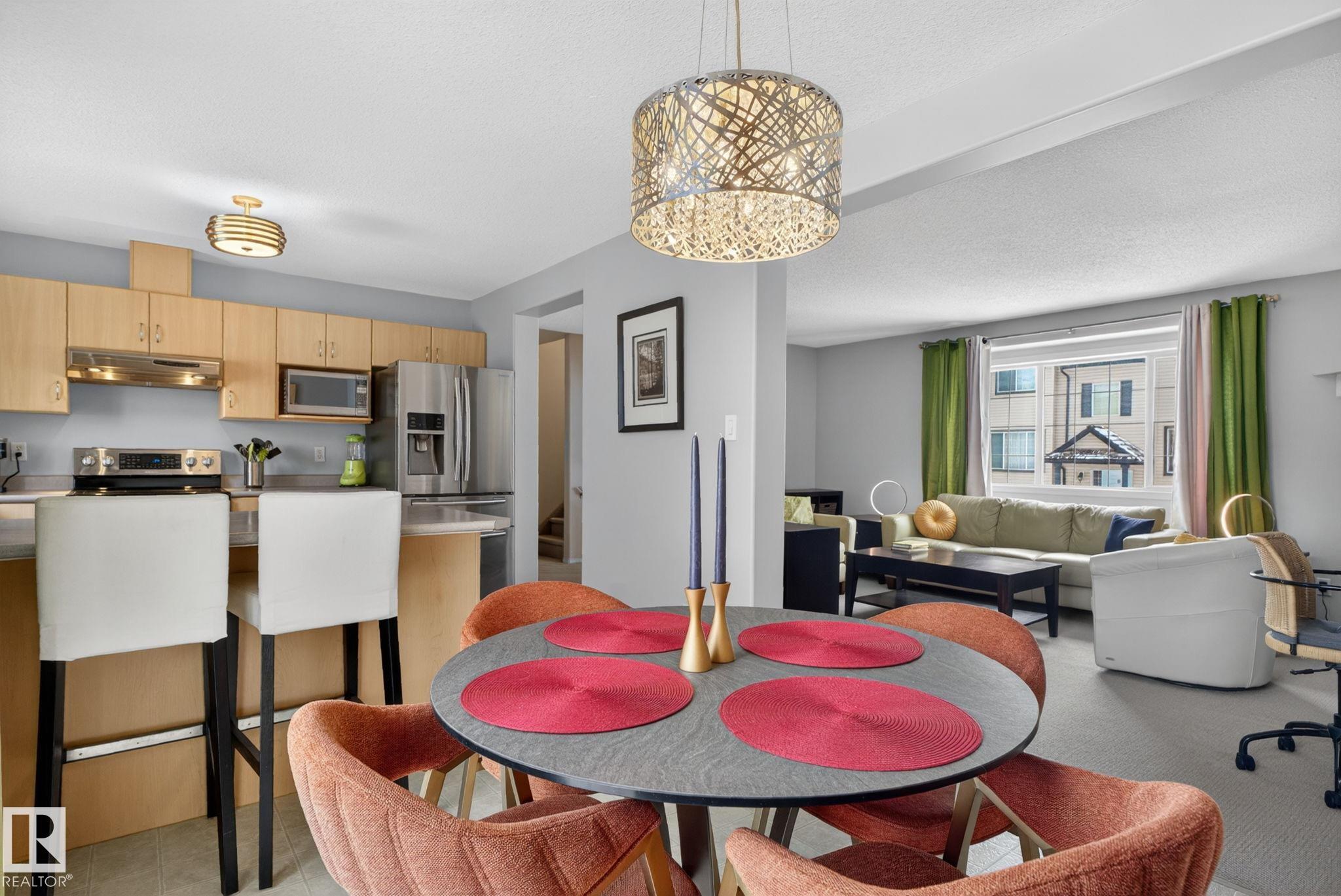 Located in the peaceful, mature neighbourhood of Blackburne with easy access to Anthony Henday Drive, the airport, shopping and many other amenities. This spacious townhouse has central air conditioning, a large west facing deck and a double attached garage. On the main level you’ll find the kitchen with newer stainless appliances, a ton of cupboard and counter space and a peninsula overlooking the dining area. The dining space is bright and has access to the deck and living room. The living room is spacious and bright, there is also a half bath on this floor. Upstairs is the primary suite, complete with a walk in closet and full ensuite. There are two more bedrooms, another full bathroom and laundry upstairs. The basement is finished with a rec room, that could easily be a 4th bedroom, storage and access to the garage. This home is a MUST SEE!