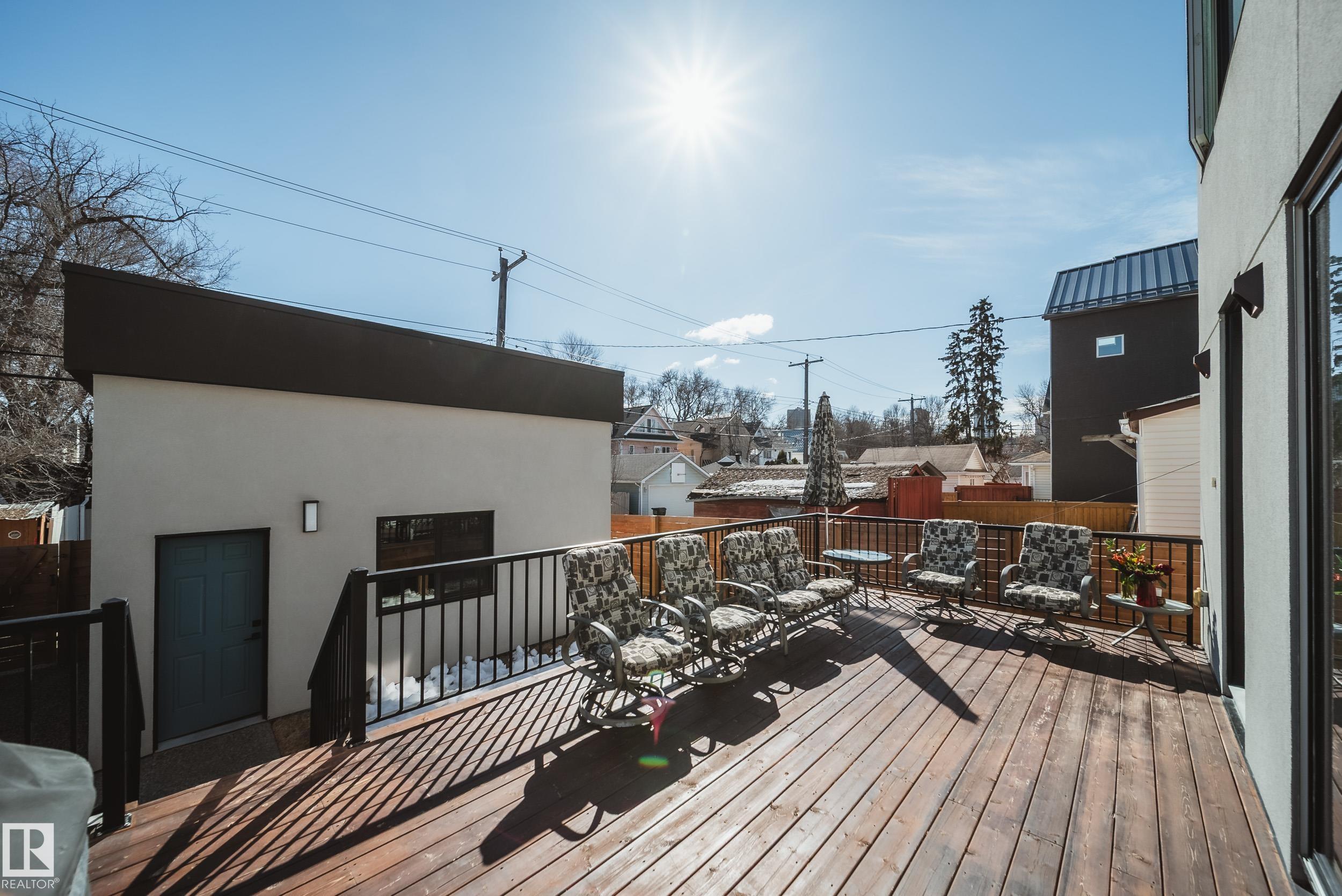 Welcome to this GORGEOUS, CUSTOM-BUILT 3-storey home in Edmonton’s prestigious downtown community of Rossdale! This architecturally designed, PARK-FACING property offers the perfect blend of luxury & style. Featuring 5 bedrms & 4.5 bathrms, complete w/ an ELEVATOR servicing all floors & FOUR outdoor living patios! Open-concept main floor is designed for entertaining, showcasing 8-ft doors, a stunning living room w/ gas fireplace, chef-inspired kitchen w/ custom cabinetry, gas stove & built-in appliances. Spacious dining area includes TWO built-in wine coolers & access to a massive exterior deck. Second level offers 3 large bedrms, a full bathrm, laundry, & a luxurious primary suite w/ 4-pc ensuite featuring a steam shower & WIC! 3rd level includes a bedrm, full bath, loft w/ wet bar, & TWO balconies! FF basement w/ large bedrm, full bath, living area & storage. LEGAL SUITE READY w/ plumbing roughed-in & 2 furnaces OVERSIZED HEATED garage w/ 14’ ceilings, epoxy flooring & fully landscaped yard! MINS TO DT!
