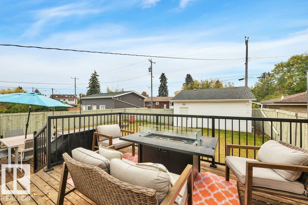 Welcome to this beautifully renovated bungalow, ideally situated in the highly sought-after community of Avonmore - just a short walk to the LRT station for easy commuting. The main floor features three bedrooms, a full bathroom, a cozy living area with a large window that fills the space with natural light, and a gas fireplace for added warmth and charm. The kitchen boasts stainless steel appliances and a convenient dining area, with patio doors leading out to a stunning, newly constructed multi-level cedar deck — perfect for outdoor entertaining. Step outside to a generous backyard, offering plenty of space for kids to play, gardening, or relaxing evenings around a firepit. The property also includes a double detached garage, providing ample parking and additional storage. The fully finished basement offers even more living space, including two additional bedrooms, a second full bathroom, a laundry room, and a spacious family room.