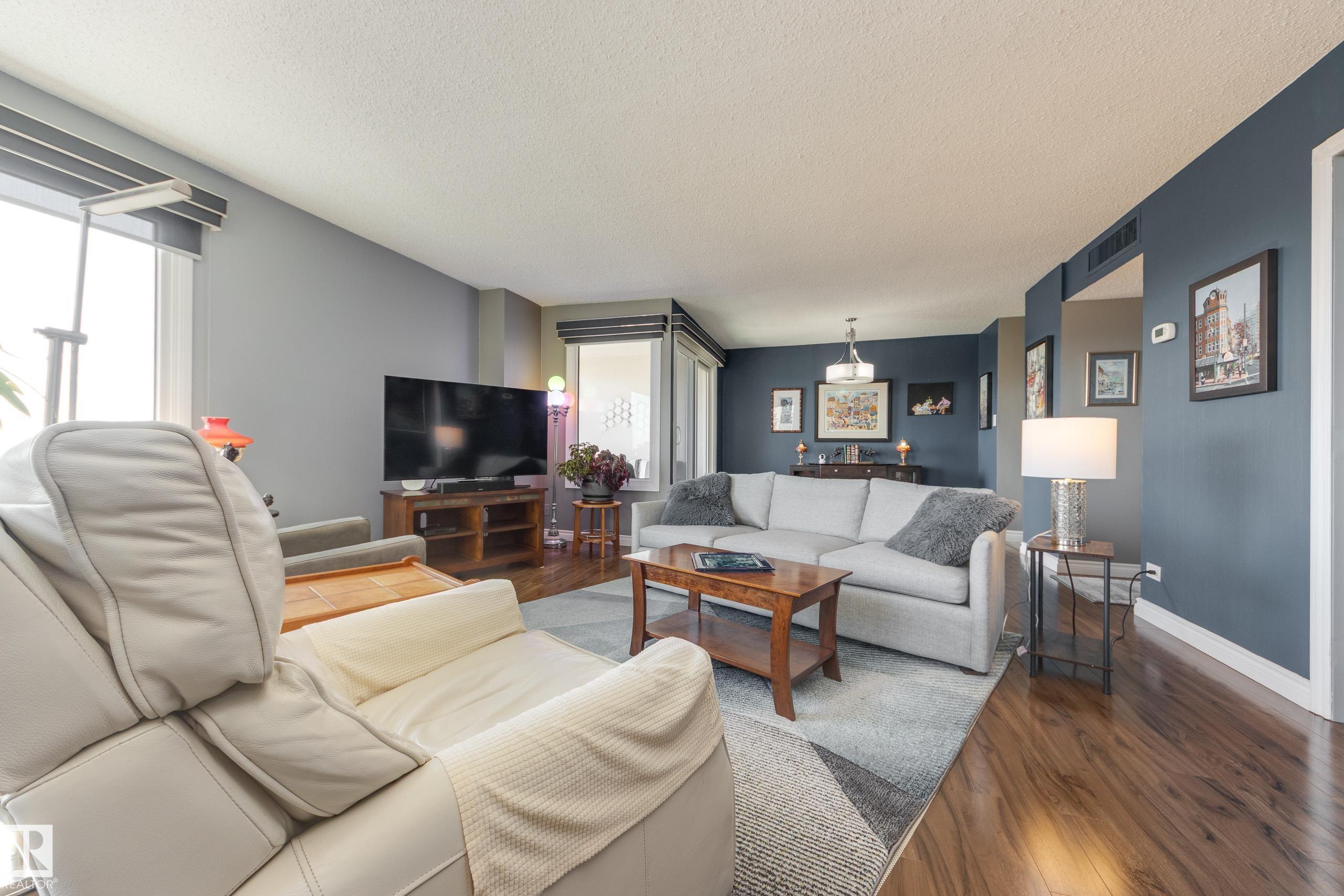 Welcome to this beautifully UPGRADED 2 bed + den unit offering breathtaking RIVER VALLEY and GOLF COURSE VIEWS! Upon entry, you’ll appreciate the MODERN finishes throughout, including durable laminate and vinyl plank flooring and stylish light fixtures and doors. The kitchen is a standout with sleek QUARTZ countertops, glass subway tile backsplash, and S/S appliances, perfect for everyday living and entertaining. The spacious living room is filled with natural light and anchored by a stunning corner electric F/P with Italian stone, all framed by those incredible PANORAMIC views. The OVERSIZED primary suite features a convenient 2PC ENSUITE and a closet with STAINED GLASS sliding doors. A beautifully updated 3pc main bath includes a stand-up shower and BUILT-IN TOWEL NOOK. The 2nd bed and den offer flexibility for guests or a home office. LIGHT FILTERING BLINDS, A/C, plus 1 U/G parking stall complete this amazing package. Ideally located just steps to dining, shopping, transit, golf, and most amenities!