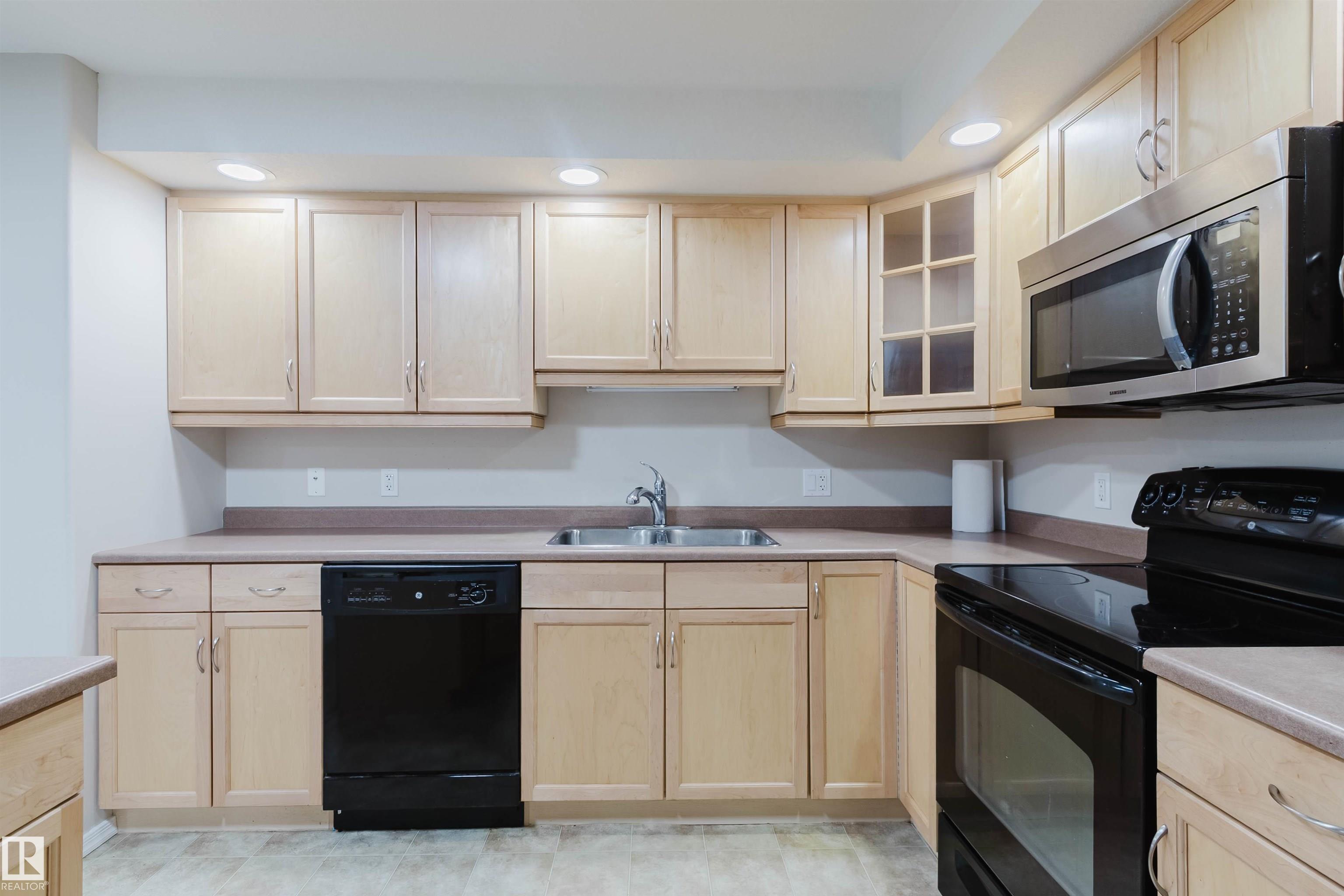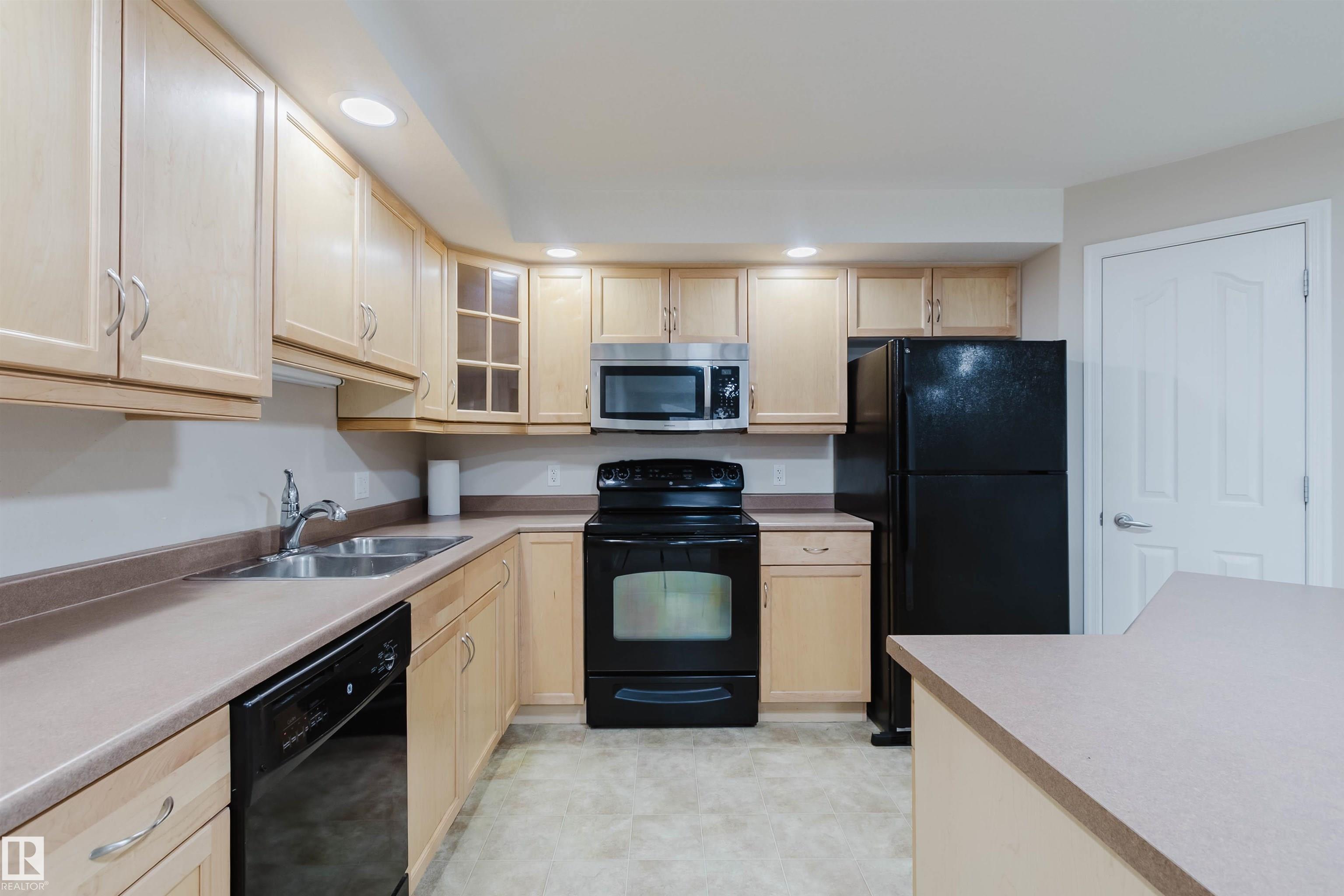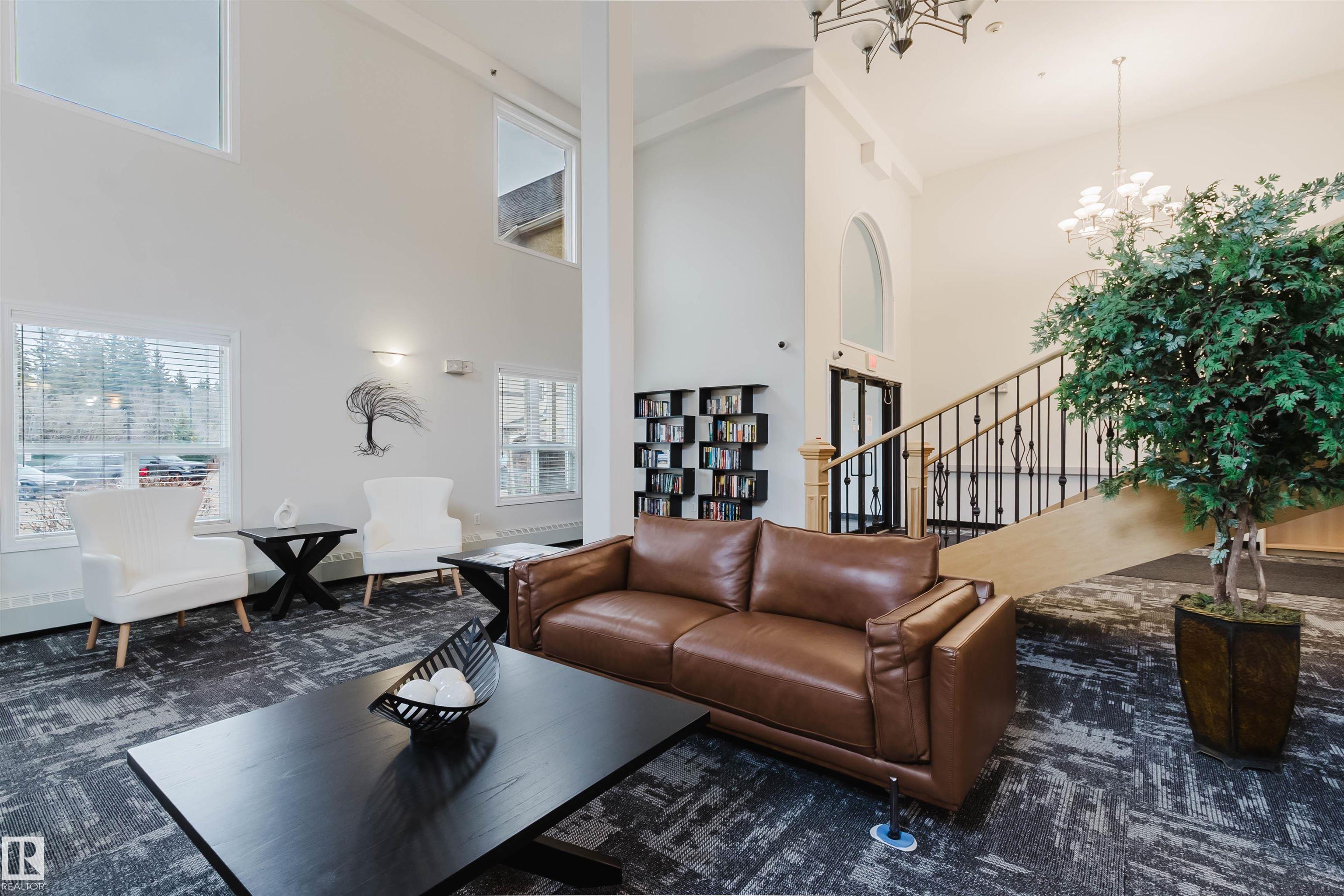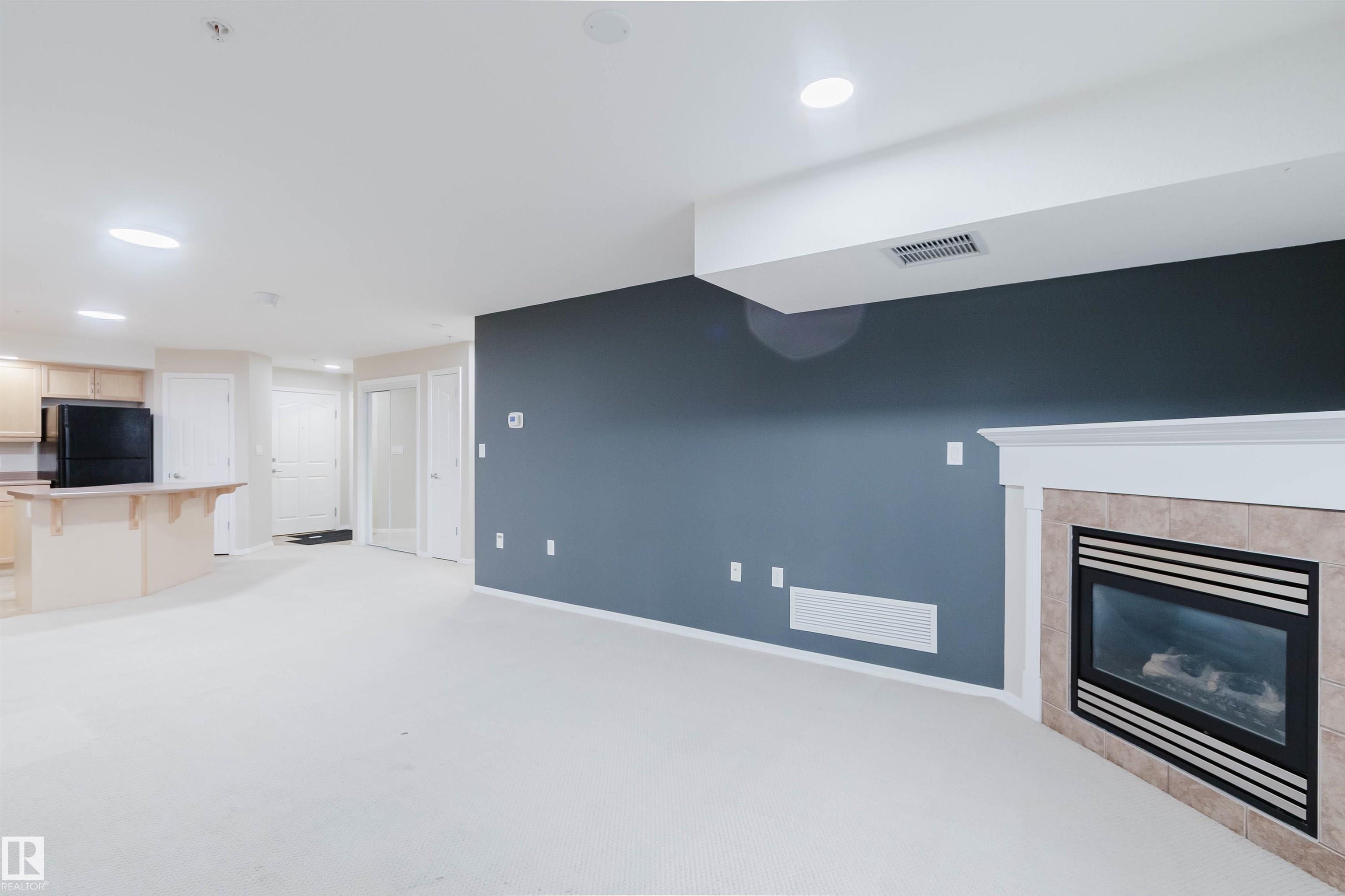 Stunning 2nd floor in Spirit Ridge at Rutherford. Well maintained condo features a kitchen with ample cabinetry, efficient workspace and breakfast bar island, flows smoothly to open concept combined dining area and living space with cozy gas fireplace, convenient full bathroom and access to wrap around private balcony. Primary bedroom includes double door access to balcony, walk through closet and private ensuite bathroom. Second bedroom is nearly equal size and has own large closet. In unit laundry, all appliances, and air conditioning make this condo move in ready. Grand common areas include social room, gym and guest suite. Located in Rutherford, a short walk to scenic multiuse trails, peaceful parks, and the Heritage Valley transit hub. Easy access to Anthony Henday Dr, South Edmonton Common, and Windermere’s many restaurants.